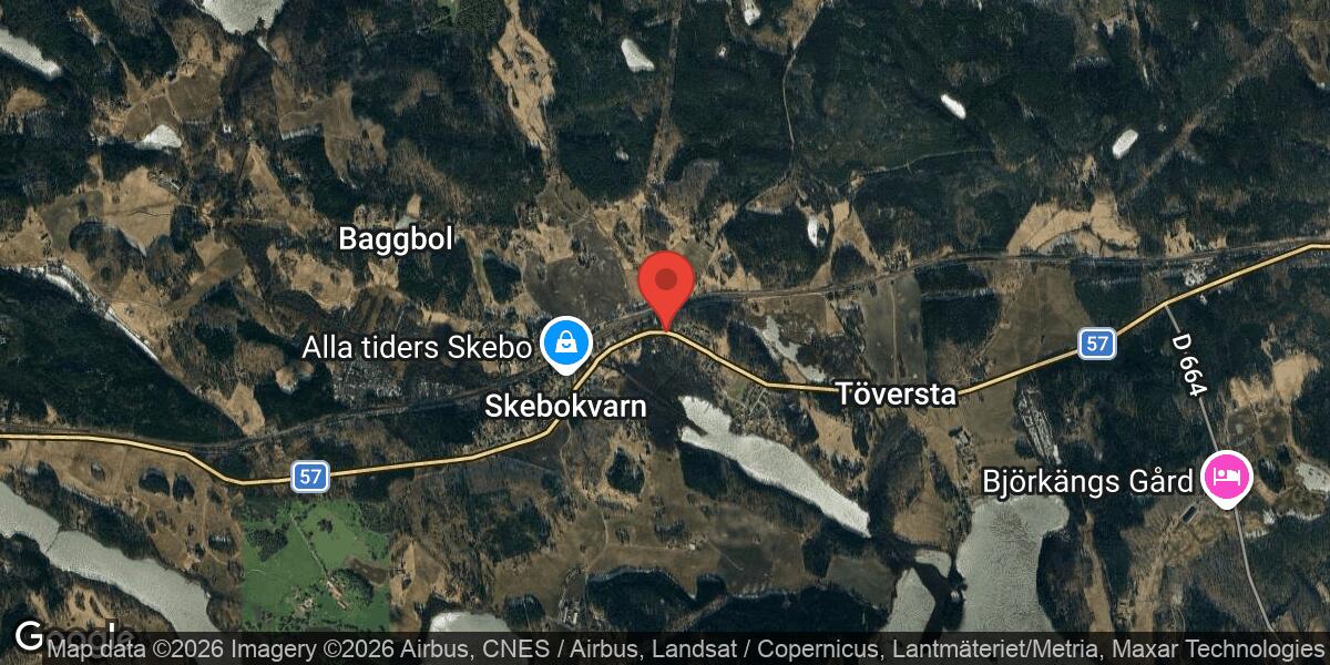 Den 22 april 2026 pågår vägarbete med målning av väglinjer längs Väg 57 från Kristineberg till Dammbro i riktning mot Järna. Arbetet beräknas vara avslutat klockan 16:00 samma dag.